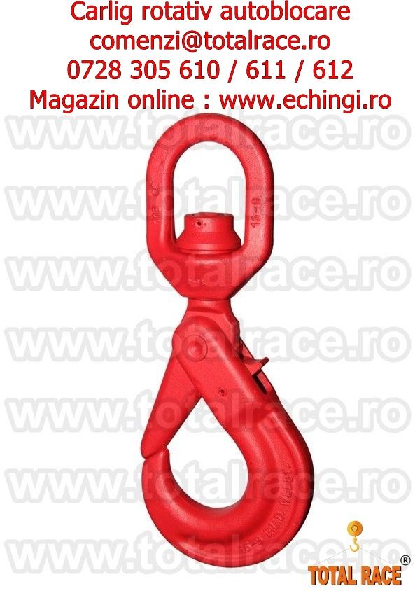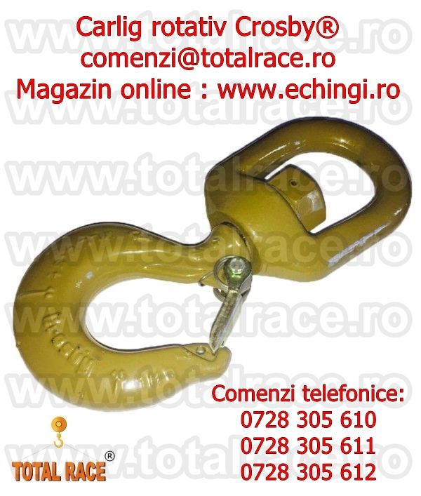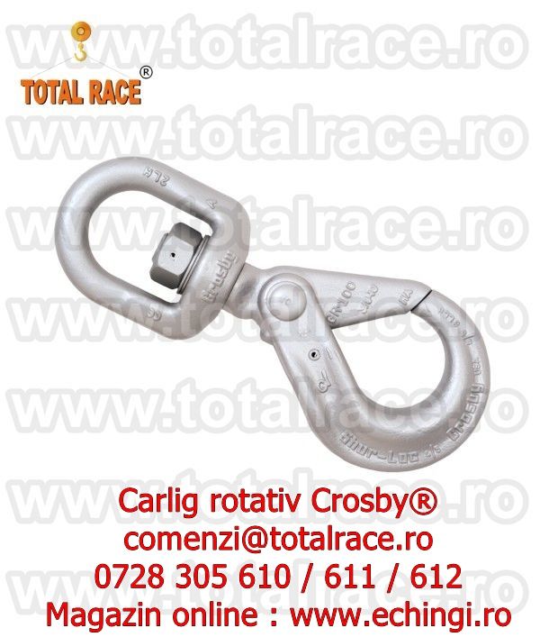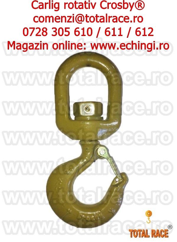 - Total Race Romania comercializeaza carlige rotative cu siguranta , carlige macarale , carlig rotativ de ridicat sarcini la inaltime , carlige ridicare capacitati mari , carlige macara cu siguranta capacitate de ridicare intre 1,25 tone- 31,5 tone productie Crosby cu livrare stoc Bucuresti , instalatii de ridicat cu carlige rotative , dispozitive lant ridicare 1-4 ramuri cu carlige rotative cu siguranta , carlige rotative cu siguranta pentru macara montabila pe camion, carlige rotative cu siguranta pentru furci macara , carlige rotative cu rulment , carlige rotative cu bucsa , carlige macara cu autoblocare , carlige rotative cu autoblocare pentru instalatii de ridicat , echipamente de ridicare carlige rotative autoblocare , carlig rotativ cu autoblocare , carlig rotativ cu autoblocare capacitati mari , carlige rotative autoblocare diverse capacitati de la 1 tona la 18 tone, carlige rotative cu siguranta grad 80 , carlige ridicare capacitati mari grad 100 cu livrare din stoc Bucuresti.