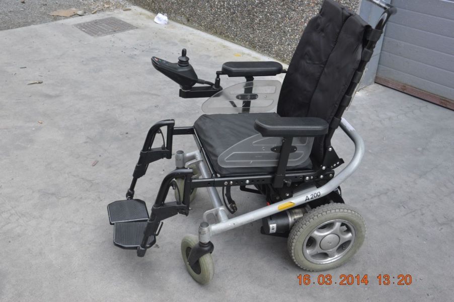 Carucior electric pliabil pentru disabili are viteza reglabila si atinge o viteza de 12 km/ora functioneaza cu 2 baterii de 12 v are si incarcatorul de baterii de 24 v