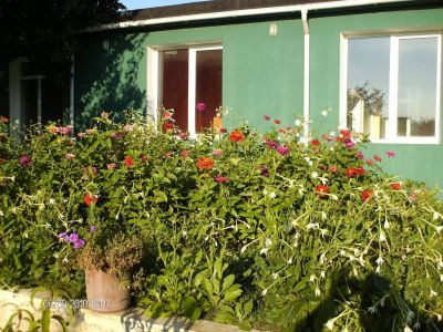 Gradina: 800mp cu alei placate cu calcar buchardat,gazon, pomi fructiferi toate categoriile de fructe(30 buc.) pomi decorativi ( tei, salcam, brazi, albizia) vita de vie( 45 buc. soiuri deosebite), sera/solar -180mp si capacitate 22.000 plante