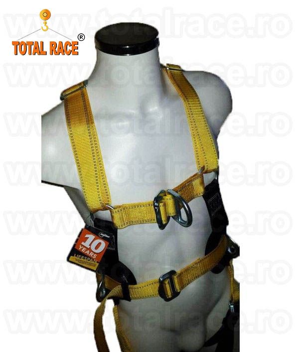 Total Race comercializam centuri de siguranta pentru protectie la inaltime , echipamente de lucru si protectia muncii, hamuri ajustabile, centuri de siguranta si protectia muncii , centuri complexe, funii de siguranta, centura de siguranta pentru protectie in timpul lucrului pe schele, in timpul utilizarii platformelor la inaltime, mobile si fixe, a nacelelor si platformelor autoridicatoare de lucru , mijloace de legatura , carabine , hamuri de protecţie pentru toate activităţile desfăşurate la înălţime.