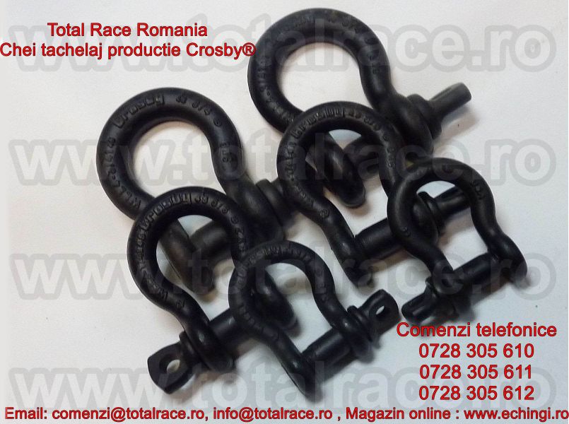 Total Race are in stoc chei tachelaj/gambeti/shackles productie Crosby® diverse modele : chei tachelaj omega , chei tachelaj drepte , gambeti cu bolt filetat , gambeti cu bolt , piulita si siguranta, chei tachelaj speciale pentru teatru,scene,shackles ROV pentru industria marina,gambeti pentru sarcini foarte grele,chei tachelaj off road.Gambetii sunt forjati, material otel-aliat, galvanizati la cald avand capacitatea stantata permanent pe shackles.