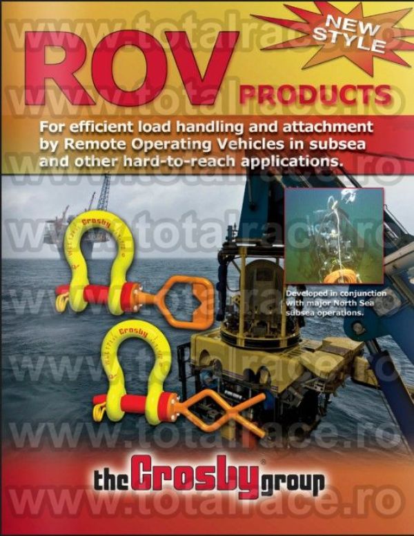 Total Race comercializeaza : chei de tachelaj model G 209R tip omega marca Crosby, cheie tachelaj cu bolt si siguranta de blocare. Capacitati de la 6,5 tone metru pana la 55 tone metru. In conformitate cu: cerintele de performanta ale Fed. Spec. RR-C271D tip IVA, grad A, Clasa 2, ASME B30.26. Factor de siguranta: MBL = 5 x WLL (Sarcina maxima de lucru) . Calire si Temperare pentru duritate, rezistenta maxima . Material: otel aliat forjat Toate partile arcuite a cheilor de tachelaj ROV, doar daca nu este specificat altfel, sunt galvanizate si dupa aceea vopsite galben fluorescent.