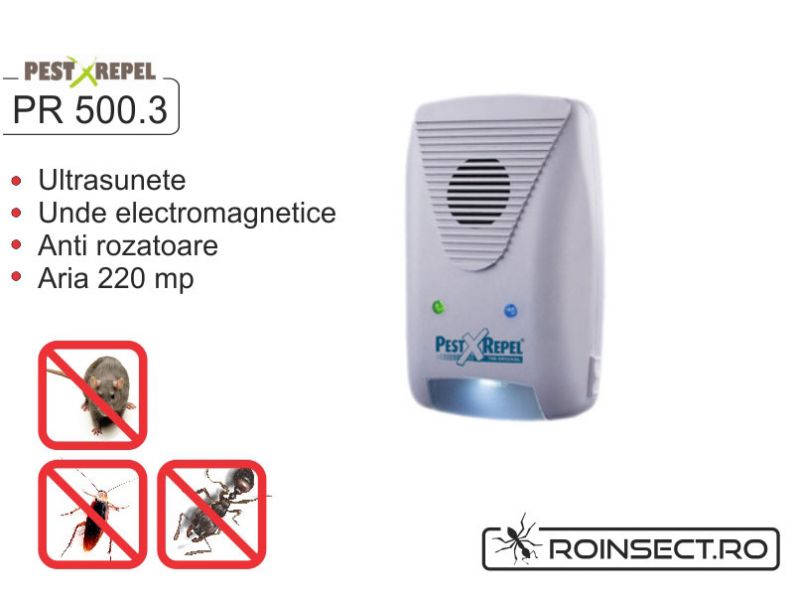 Aparatul PestXRepelPR 500.3 este un dispozitiv ce foloseste o combinatie de unde electromagnetice,ultrasunete si o lampa flash pentru o eficienta maxima in combaterea daunatorilor. Ne puteti contacta la nr de telefon: 0758101503 sau http://www.roinsect.ro/pesticide/aparate-anti-daunatori/5 -