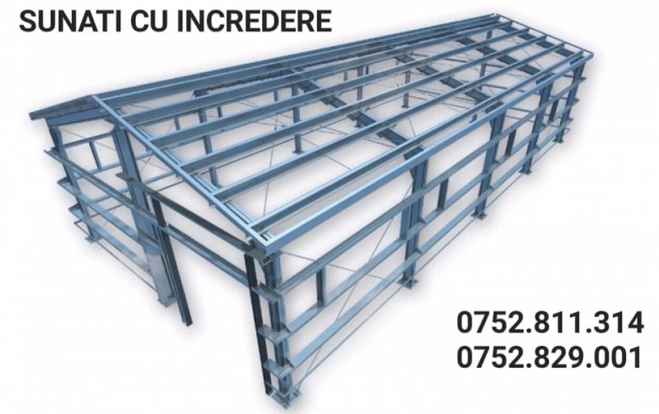 Echipa cu care se confectioneaza vor face totul conform planului si bineinteles va vom oferi oportunitățile pentru un pret corect si accesibil, nu percepem adaosuri comerciale extra, suntem o echipa compacta si ne punem toata putinta pentru a va oferi cel mai bun pret, calitate, profi. Structurile se pot confectiona fie din profile HEA IPE fie din teava groasa rotunda si patrata. Sunati cu incredere. Va putem pune la dispoziția si un proiect informativ la cerere. telefon: 0752829001 si 0752811314.