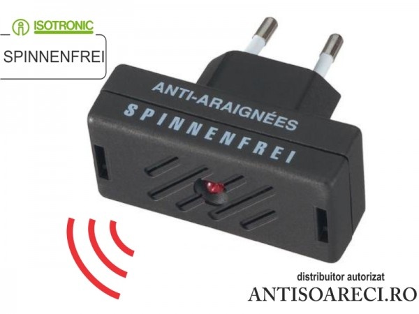 Aparatul Isotronic Spinnenfrei este un aparat special conceput pentru a indeparta paianjeni , fara sa afecteze alte animale, nu este toxic si transmite ultrasunete..Ne puteti gasi la numarul de telefon :0758101503 sau http://antisoareci.ro/