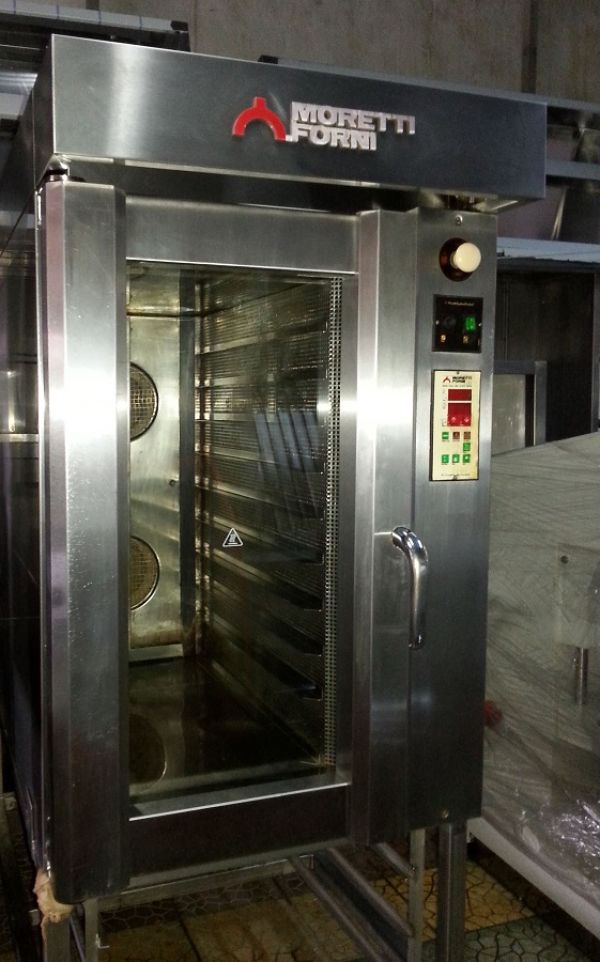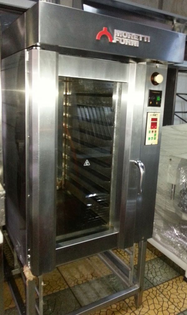 Cuptor patiserie cu 10 tavi Moretti Forni, SH, alimentare 380V, cu suport inox , dimens tava 74x42 cm , dim totale 80x120x120 cm pret 2000 Euro + Tva.