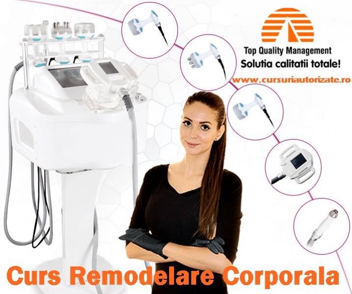 Cursul de REMODELARE CORPORALA urmareste pregatirea teoretica si practica prin prezentarea celor mai noi tehnici si tehnologii folosite in tratamentele de slabire si remodelare corporala: criolipoliza, vacuum, cavitatie, lipolaser, ultrasunete, endermologie (VelaShape si LPG), radiofrecventa, presoterapie, termoterapie, mezoterapie, electrostimulare. Se adreseaza atat persoanelor care cativeaza in saloane de infrumusetare cat si celor care nu au experienta si doresc sa acceseze o meserie cautata pe piata muncii.