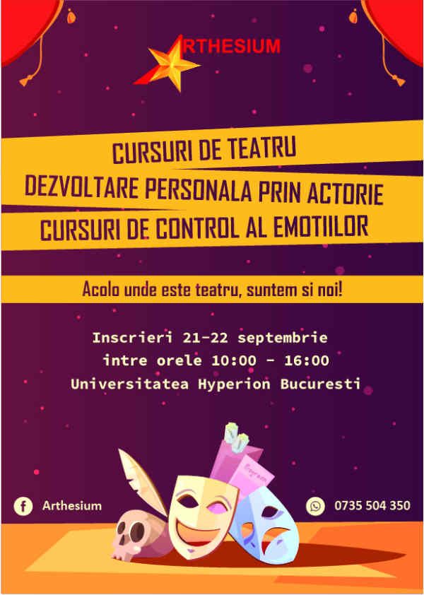 - Va asteptam la cursuri de teatru si dezvoltare personala prin actorie. Echipa Arthesium iti ofera cele mai bune cursuri. Te asteptam pentru detalii pe pagina noastra de facebook Arthesium! facebook.com /Arthesium