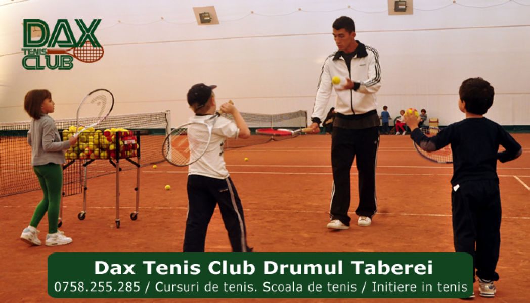 - Dax Tenis. Club de tenis situat in zona Drumul Taberei, Militari, Parcul Moghioros, sector 6, Bucuresti. Facilitati: 3 terenuri de tenis cu zgura, amplasate intr-o zona linistita, inconjurata de spatiu verde, vestiare moderne, sport bar, serviciul de racordare rachete. Oferim: cursuri de tenis si programe de intiere in tenis pentru copii si adulti - scoala de tenis pentru copii - pregatire fizica specifica - realizate de catre antrenori cu experienta, certificati PTR si FRT, unii dintre ei fosti jucatori clasati in circuitul mondial ATP, cu experienta in pregatirea copiilor de la nivelul de initiere si pana la nivel de top. Prima lectie de tenis este GRATUITA pentru copii sub 14 ani! Prin programele de intiere in tenis, antrenori cu mare experinta pun pentru prima data racheta de tenis in mana tinerilor debutanti, ii fac sa indrageasca acest sport, sa se distreze jucandu-l si totodata sa stapaneasca corect tehnica lovirii mingii inca de la varste fragede. Va asteptam!