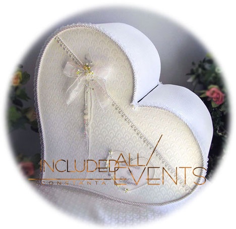 - All Included Events Constanta iti sustine evenimentul (nunta, cununie, botez, taiere mot Constata) cu toate facilitatile de care ai nevoie. Ai acum la dispozitie profesionisti in organizarea de nunta, botez, cununie, taiere mot, petreceri Constanta. All Included Constanta va ofera cutie dar nunta hand-made. Cutia de dar pentru nunta este cea mai practica, invitatii vor pune cadoul pentru tinerii casatoriti in aceasta cutie. Cutia de dar Constanta pentru nunta este un accesoriu elegant, dar si foarte util. Cutia de dar Constanta se va dovedi utila atat in timpul evenimentului cat si dupa terminarea acestuia. Asta datorita faptului ca dupa terminarea nuntii se va putea tranforma intr-un loc pentru depozitarea tuturor amintirilor legate de nunta. Cutia de dar Constanta poate avea diferite forme: casuta, joben, inima, tort, cufar, colivie sau orice forma doriti dumneavoastra. Pentru mai multe detalii si oferta completa ne puteti contacta la 0728955745.