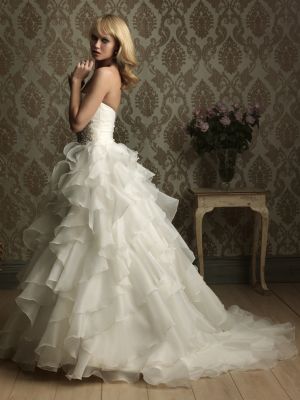 Best Bride va ofera spre vanzare si inchiriere un model special. Este o rochie creata din straturi de organza moale, iar corsetul rascroit are in talie aplicatii de cristale Swarovsky si accente de perle.Spatele este in v, iar trena se poate purta cu usurinta datorita volanelor usoare din care este creata.