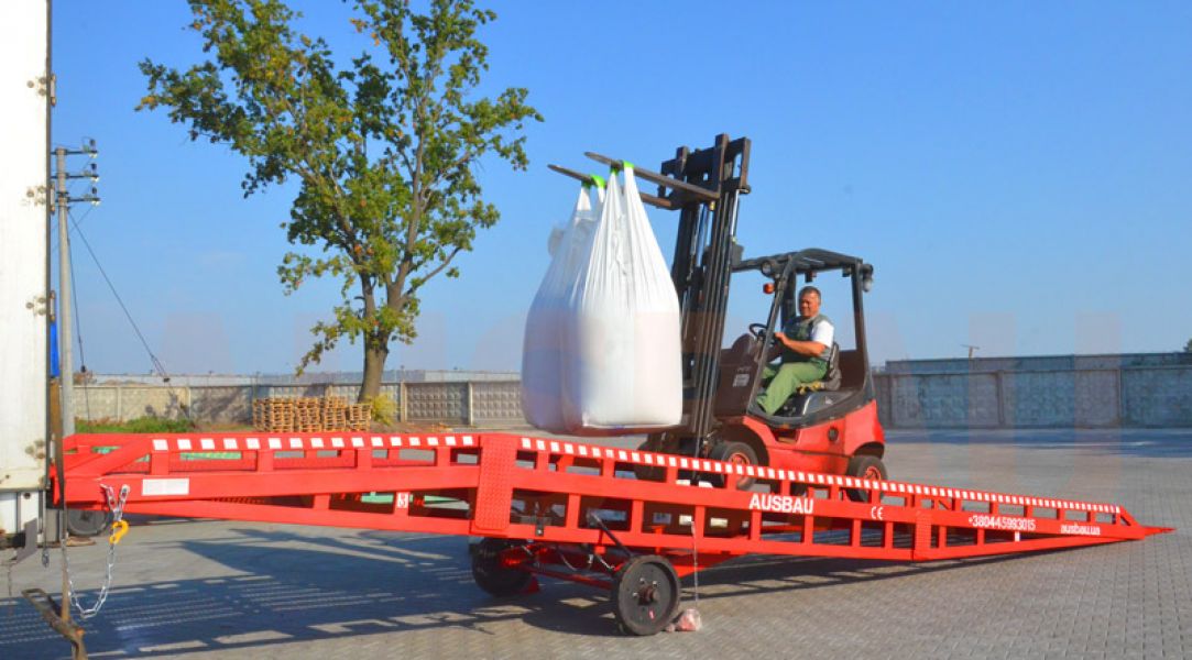 (6, 8, 10, 12 și mai multe tone) și dimensiune (min 90cm, max 165cm. Depozitare Rampe incarcare descarcare se mișce pe teritoriul īntreprinderii cu ajutorul roților și instalarea unei cuplaje rigide pivotante sub ghearele īncărcătorului. A noștri Rampe incarcare descarcare distinge confortul mișcării. Mai multe informație de Rampe incarcare descarcare AUSBAU este de pe site-ul nostru av-exim.com id:IEeP0j