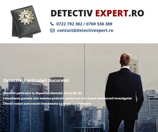 - Agentie de detectivi particulari, specializata in investigatii private, isi desfasoara activitatea de investigatii, filaj in Bucuresti dar si in celelalte orase din Romania. Detectivi particulari cu o vasta si indelungata experienta in domeniul investigatiilor private si a filajului, atestati profesional de catre organele abilitate.