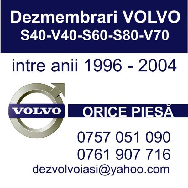 • Noi dezmembram doar volvo s40 v40 s60 v70 intre anii 1996 si 2004 avem pe stoc orice motorizare.