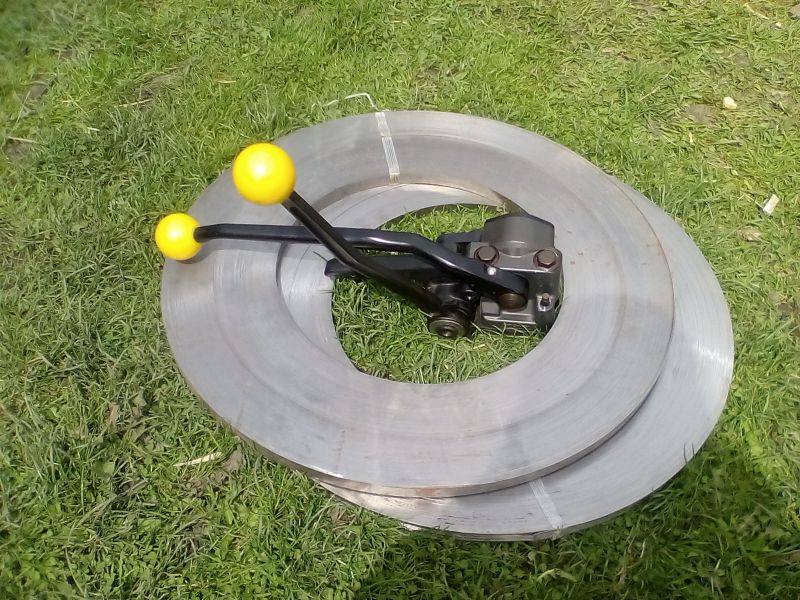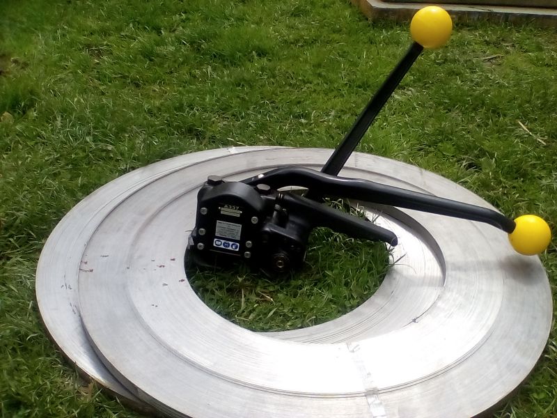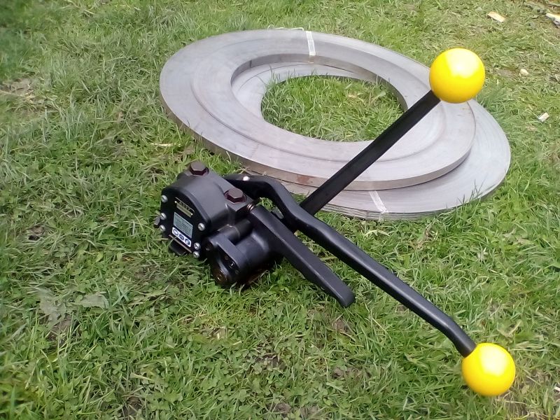 - Cu ajutorul acestui dispozitiv se executa simultan tensionarea, legarea si taierea surplusului de banda
