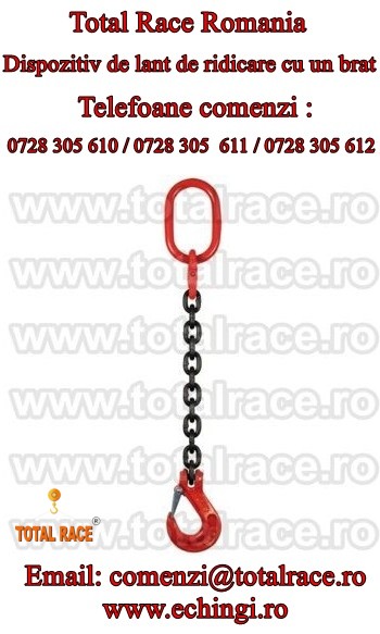 Total Race comercializeaza cu livrare din stoc Bucuresti dispozitive de ridicare din lant sisteme complete , echipamente de ridicare din lant cu lungime la cerere , sisteme de ridicare din lant cu scurtatoare pe fiecare brat , dispozitiv de ridicat sarcini la inaltime din lant de 8 mm , dispozitiv de ridicat sarcini la inaltime din lant de 10 mm , dispozitiv de ridicat sarcini la inaltime din lant de 13 mm , dispozitiv de ridicat sarcini la inaltime din lant de 16 mm , lanturi si dispozitive de ridicare cu capacitati cuprinse intre 1,12 tone si 17 tone , dispozitiv de ridicare din lant cu 1 brat , echipamente de ridicare cu 2 brate , sisteme de ridicare din lant cu 3 brate , girafe de ridicare cu 4 brate , dispozitive ridicare din lant pentru macara , lanturi industriale.
