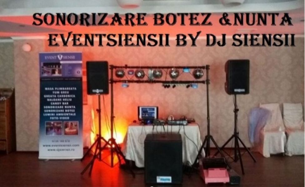 - Agentia de evenimente EVENTSIENSII, va ofera sonorizare pentru evenimentul dvs, dj nunta, dj botez, dj cununie, dj Ilvof, dj Ploiesti, dj Targoviste, dj Bucuresti, dj Buzau, dj Pitesti, dj Brasov, dj majorat, lumini arhitecturale, mese plimbarete, fum greu pentru vals, gheata carbonica, candy bar, fantana de sampanie si ciocolata, baloane heliu, foto-video si ursitoare botez, animatie si dansatoare eveniment, solisti si decoratiuni evenimente totul pe www.djsiensii.ro, tel: 0726169870, www.eventsiensii.com