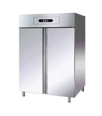 Dulap frigorific inox interior/exterior, 2 usi, capacit 1232 lt, izolatie cu poliuretan, colturi rotunjite, gratare acoperite cu plastic, picioruse ajustabile pe inaltime, usa cu autoinchidere, oprire automata a ventilatorului cand usile sunt deschise, Freon ecologic r134a, sistem de imprastiere a aerului pentru o racire uniforma, capacit. 620 lt, dimens usa 680x1630 mm, 220 V, putere 650 W, compresor HP1/2, Decongelare automata, lumina interna, Temp -2/+10 grade Celsius, greutate 185 kg 1350x800x2100 1.377 €