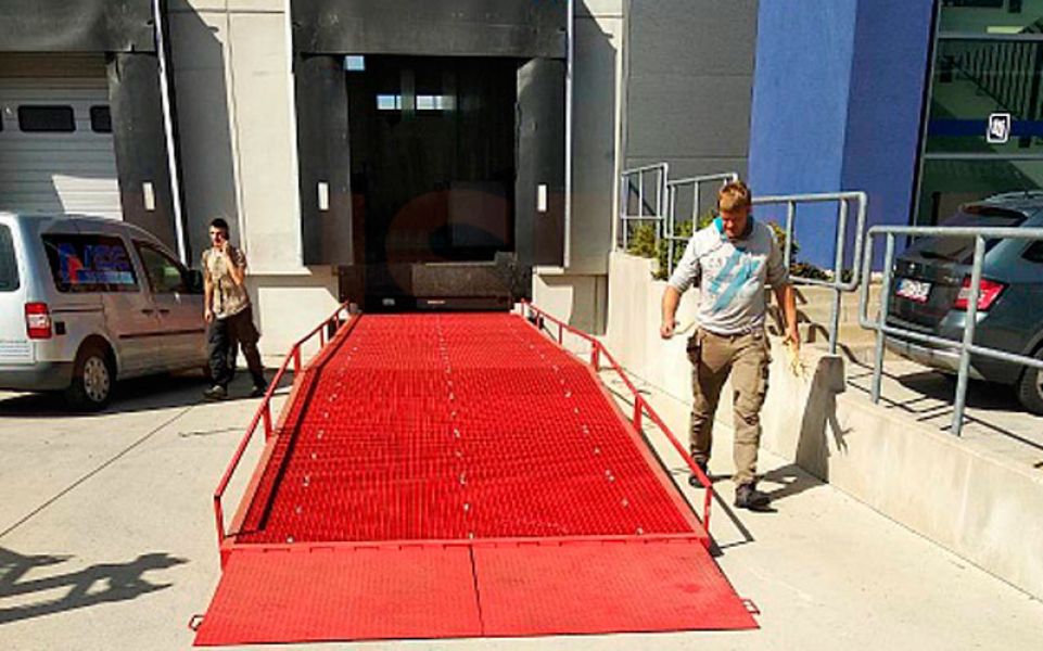 Durabile rampe de încărcare pentru vehicule utilitare AUSBAU-VR. Rampa pentru depozit permite atingerea nivelului cadrului vehiculelor utilitare de la nivelul zonei de încărcare a depozitelor. Noi fabricăm modele cu sarcina de la 5 până la 8 tone și mai mult.