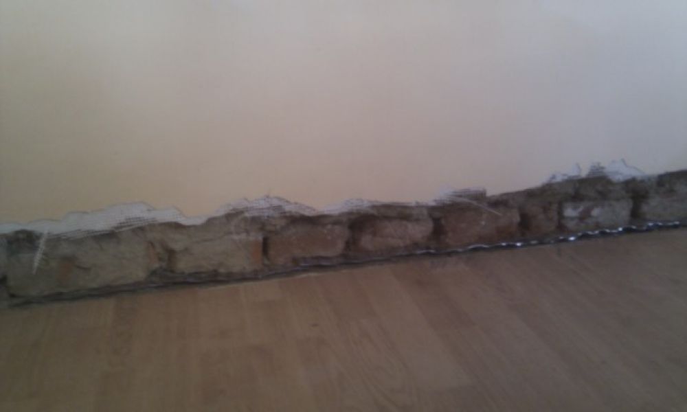 Sistemul consta in placi inoxidabile introduse orizontal la baza peretelui in rosturile zidariei strapungand peretele formand o bariera etansa impotriva umiditati.