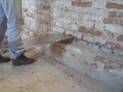 Sistemul consta in placi inoxidabile introduse orizontal la baza peretelui in rosturile zidariei strapungand peretele formand o bariera etansa impotriva umiditati.