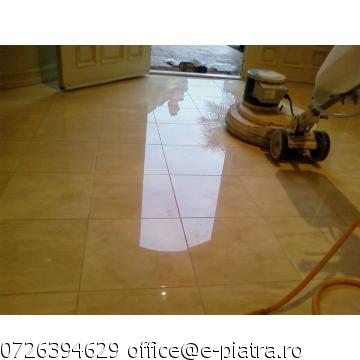 Tratamente – Curatare, Impermeabilizare, Ceruire (marmura,travertin)contra petelor,zgarieturilor si pentru intretinere. Reconditionare - Slefuire pentru suprafete denivelate, Recristalizare. Consultanta si raspuns in maxim 24 ore. Aparatura si substante ITALIA. Cel mai bun raport calitate/pret, de la 3 Euro/mp. Partener distribuitor substante materiale profesionale recomandate de producatorii - Made in Italia,Certificat de calitate atestat international. Colaborator Asociatia Arhitectilor. Vasilica Adrian Mob: 0726.394.629 3 EUR