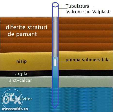 - Executam lucrari de foraje puturi pe tubulatura pvc cu o reducere intre 15/25 la suta la lucrare executata cu teva pvC ECO.100 la 100 garantie de la producator VAL PLAST. Forajul unui put poate fie pe tub pvc cu diametrul de 125mm, 140mm ,160mm, 200mm, 250mm ,3000mm, in functie de zona in care se foreaza se stabileste unul dintre diametrele mai sus mentionate pentru un debit de apa eficient nevoilor intre 1000si 5000de litri constat tot timpul. Va mai informam ca pe linga foraje executate de catre noi mai putem executa si denisipari deculmatari la puturile vechi nefolosite de mult timp si denisipari. captusirea acestora unde este nevoie pt a putea fi folosite in continuare. Ne deplasam in toata tara.pret: 75 lei; 0767459080