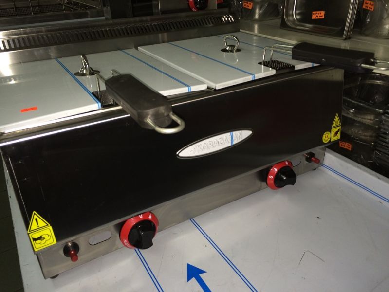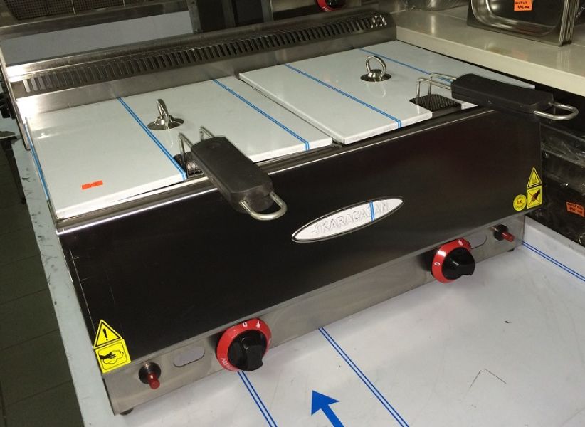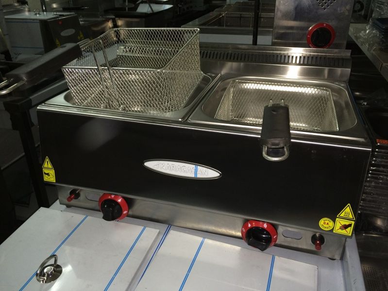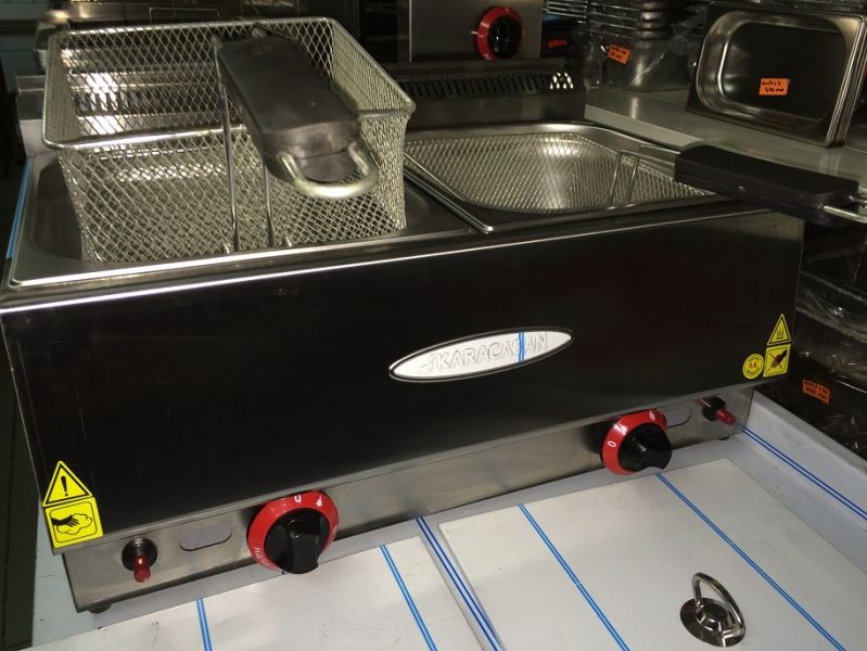 Friteusa 8+8 litri de banc, gaz natural, consum 3.5 kw, greutate 9 kg, pret 230 Euro fara Tva. Produs nou cu garantie 12 luni!