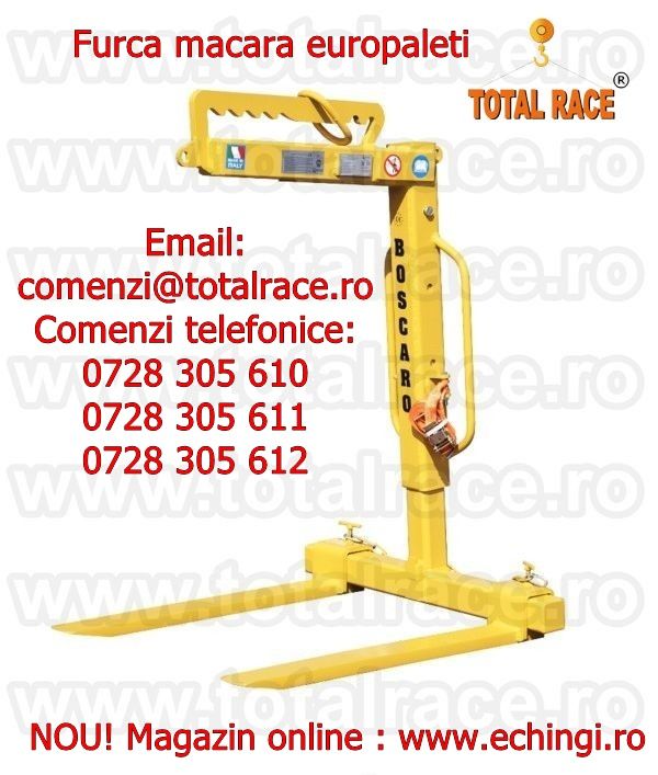 Total Race Romania livreaza din stoc furca paleti model MBA, model MBRA, furca macara model MBRA-E cu arc si protectie, furci macara reglabile, furca macara paleti, furci de macara, furca de macara pentru europaleti, furci de macara cu capacitati diferite si lungime lame, furci de macara reglabile pe inaltime, furci de macara cu lame reglabile, furci de macara cu reglarea automata a centrului de greutate, furci de macara productie Italia, accesorii pentru furci macara, carlige rotative.