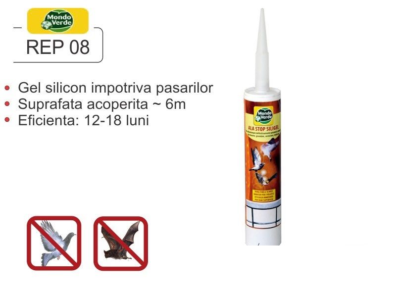 REP 08 este un gel siliconic impotriva pasarilor dozat in cartuse ,este incolor, inodor, cu un efect de pana la 12 -18 luni.ideal pentru suprafete lineare.Comenzi la numarul de telefon :0758101503 sau http://www.anticartite.ro/produs/gel-siliconic-anti-pasari-300-ml-rep-08/235