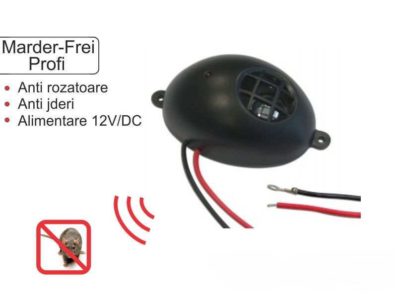 Marder Frei Profi se conecteaza la borna autoturismului si va incepe sa emita ultrasunete ce afecteaza sistemul nervos al daunatorilor si ii determina sa plece din zona acoperita de aparat.Comenzi la numarul de telefon :0758101503 sau http://www.anticartite.ro/produse/anti-soareci/aparate-auto/4/11