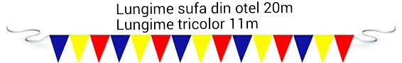 - Vindem ghirlande tricolore pentru :1 decembrie; evenimente; zile festive etc. Ghirlanda contine : Sufa din otel 20m si stegulete tricolore ce au o lungime de 11m. Steguletele sunt dintr-un material textil cauciucat, ce rezista la razele UV; inghet; vant si ploaie. Pentru mai multe detalii va rugam sa ne contactati la nr. afisat. Va multumim! 0761204444.