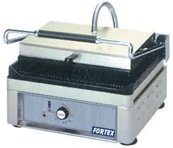 Contact grill simplu, constructie inox AISI 304, 18/10, suprafata utila 270x350mm, control termostatic, temp. max. 300°C, alimentare 220V, putere 2,5Kw, dimensiuni 420x410x280mm. Pret 231 Euro. Website: www.echipamentehoreca.ro , Tel: 0731 347 077