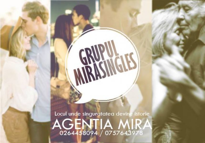 - Agentia Matrimoniala Mira si Grupul MiraSingles: O iesire in natura, o frumoasa vacanta, o seara speciala in care sa dansezi, sa te distrezi, sa te detasezi de rutina de zi cu zi... Pentru unii un lucru firesc. Pentru tine... poate doar dorinta. Nu ai pe nimeni alaturi, iar singur(a) este greu sa te bucuri de toate acestea. Vino alaturi de alti Single la evenimentele noastre si poate chiar iti vei intalni „sufletul pereche”! Meriti o schimbare pozitiva in viata ta, nu? Ne poti gasi la 0757643978.