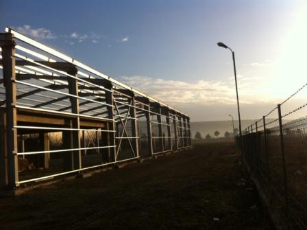 poarta,hala industriala 16x50 cu birouri p+1 [200m2 birouri +700m2 hala deschisa fara stalpi pe mijloc . in acest moment fundatiile si structura metalica sunt montate . terenul are 5000m2 cu deschidere de 26m2 la dn1a adica soseaua ploiesti valeni cheia brasov. avem apa si 380v . hala se construieste cu autorizatie de constructie valabila ,si proiect de rezistenta calculat pentru romania ,terenul este propietate inclus in pret si este intravilan industrial . pretul este pentru hala invelita cu panouri sandwich de 5 cm si pardoseala cuartata turnata in stadiul actual pretul este de 280000 euro