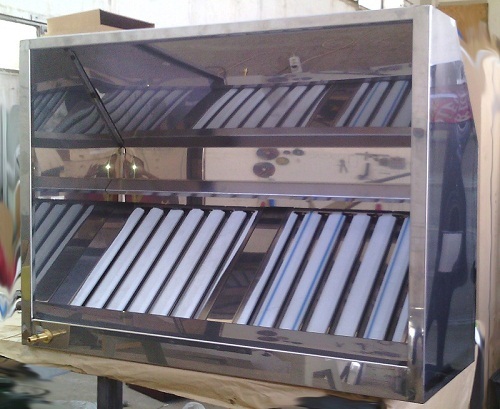 Hota inox de perete Block type, profesionala , 3 filtre labirint cu dim. (500x500) mm, 1 gura de evacuare, robinet pentru scurgere grasimi cu Dimensiuni (1500x700x470) mm; Pret Promo 318 Euro+TVA;