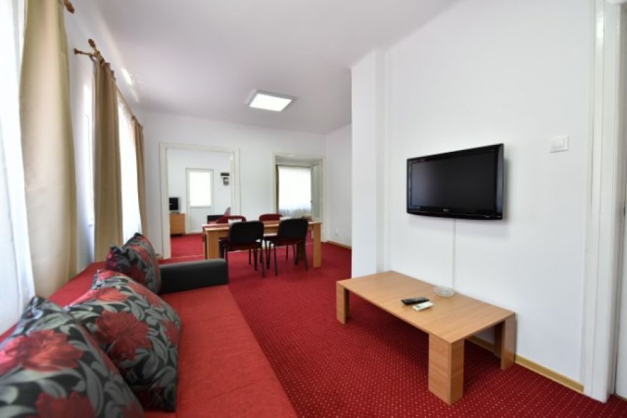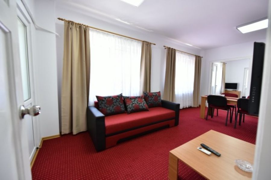 -doua dormitoare: pat dublu si canapea extensibila, televizor ecran mare