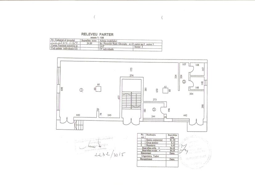 Ofer spre inchiriere un spatiu comercial in Bucuresti sector 3 pe Bd-ul 1 Decembrie 1918, la intrare pe str. Plt. RADU GHEORGHE, avand o suprafata de 100mp utili, 112mp desfasurati, la parterul unui bloc de 3 nivele construit in 2014, utilat cu doua grupuri sanitare, un mic birou si centrala proprie, termopane, zugravit proaspat, gresie de trafic intens si faianta, toate noi si mai aveti aferent spatiului comercial si doua loturi de teren de care va puteti folosi, unul de 36mp reprezentand Lot 2 si unul de 22mp (parcare) reprezentand Lot 3.