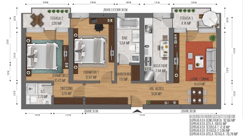 - Blocul cuprinde urmatoarele dotari si este construit astfel: Loc de parcare gratuit, Fatada ventilata Alucobond Incombustibil, Radier general, Structura dala groasa, Cofraj metalic din aluminium, Caramida Porotherm, Polistiren 10 CM Apla EPS 100, Finisaj pereti Apla, Tamplarie-aluminiu cu bariera termica, Geam termopan duplex, Balcon inchis, Bucatarie inchisa cu fereastra exterioara, Baie cu fereastra exterioara, Aparat de aer conditionat, Unitate centrala de aspirat, Centrala termica proprie cu repartitor, Termostat de ambient wireless, Videofon, Prize si intrerupatoare Bticino, Finisaje la alegere incluse in pret, Marmura, Lift Schindler, Iluminat led, Parcare supravegheata video, Utilitat; 58352 euro;