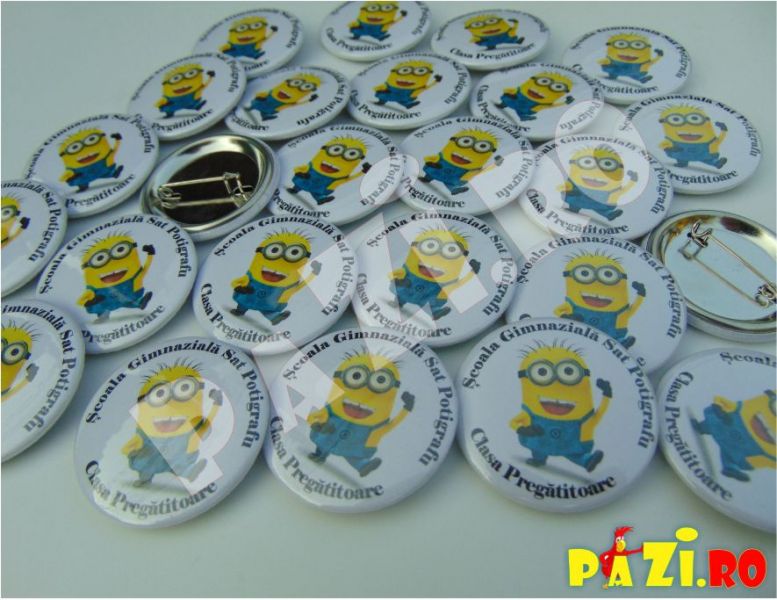 Confectionam rapid insigne pentru campanii electorale, insigne nominale, insigne pentru cei mici, insigne cu albinute, insigne cu strumfi, insigne cu personaje din desene animate.