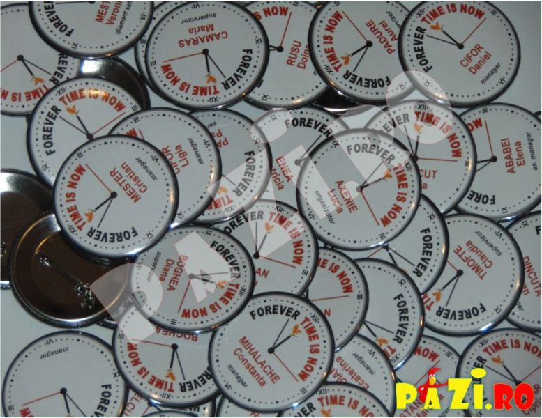 Realizam in atelierul propriu insigne personalizate cu orice grafica, text.