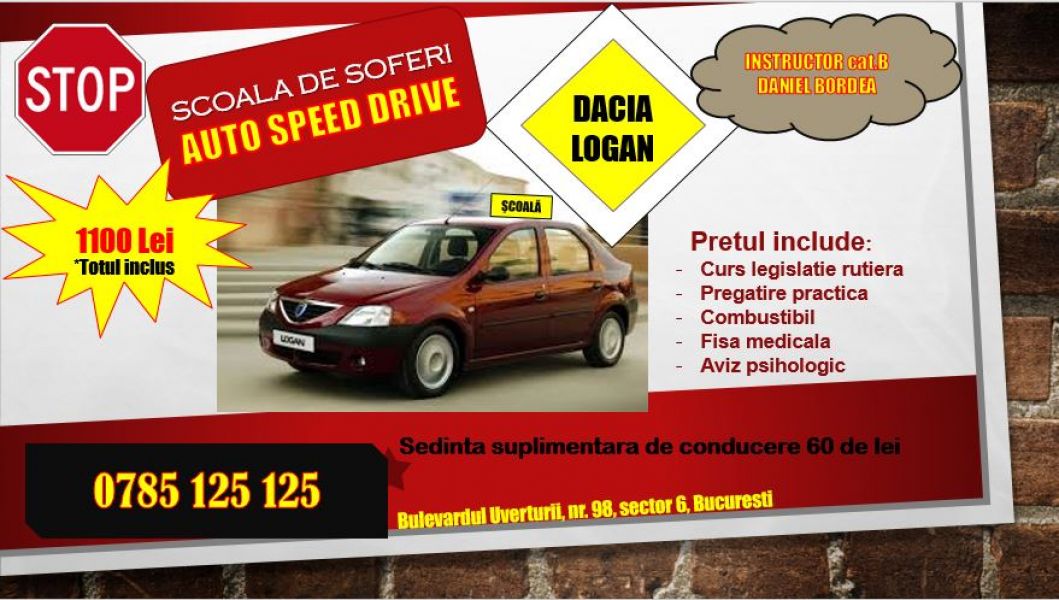 Spune-ne parerea ta despre anuntul "Instructor auto cat B, Dacia Logan sector 6, 1100 lei totul inclus".