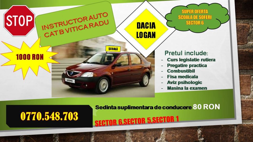 Curs de conducere auto categoria B, cu instuctor auto experienta in domeniu de 9 ani . Cursul are pretul de 800 de lei si......
