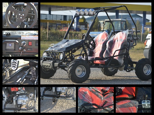 Model de 110cc Buggy . 125cc motor 4 timpi singur cilindru de aer racit . 15 HP . V-Max 60 kilometri pe oră . Transmisie cu 3 viteze semi-automata . lanț de antrenare . Electric aprindere starter . Capacitate rezervor de combustibil de 4,2 litri . 2 Suspensia fata reglabile . 2 amortiozoare spate ajustabile. Frana fata | discuri de frana spate 2 . Frana disc 1 spate . Anvelope 16x8-7 . Încărcare 180 kg . Dimensiuni în mm LxlxH 2100x1250x1300 . Relatii la Tel: 0767.285.850; 0732.385.084; 0755.480.736. Pret: 1300€ . Viziteaza Vand-atv .com pentru mai multe detalii -