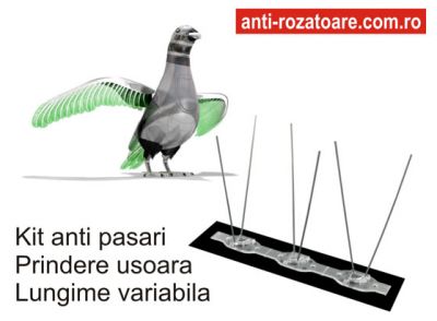 - Kit anti porumbei. Fara substante toxice, fara a rani pasarile, fara a produce zgomot. Se instaleaza pe stresinile, acoperisurile sau balcoanele caselor, impiedicand aterizarea pasarilor, ce pot produce mizerie (pene, excremente) Lungime variabila. Detalii la www.anti-rozatoare.com.ro