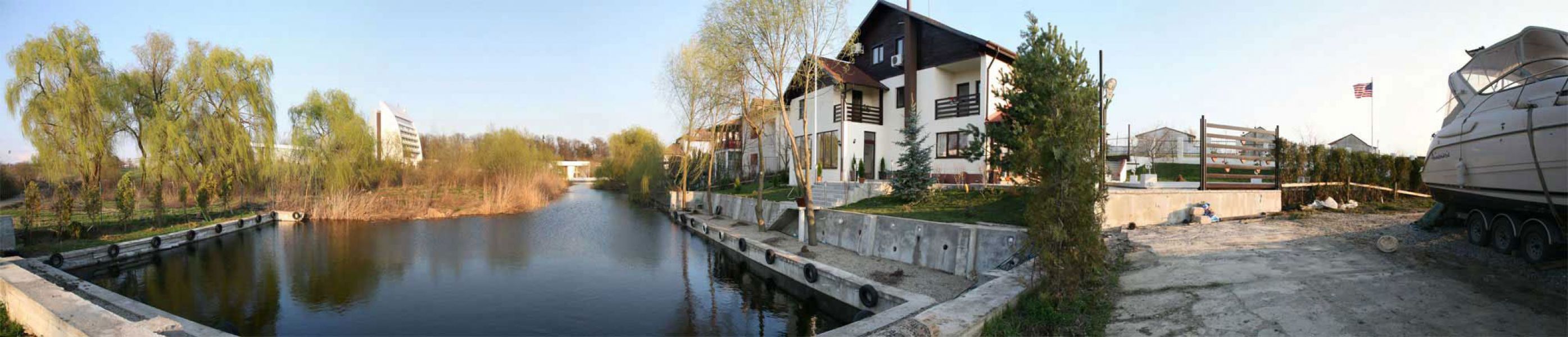 Teren 500 mp, deschidere la apa 26 mt amenajata. Subsol mic pt hidrofor Parter: hol bucatarie utilata sala mese sufragerie