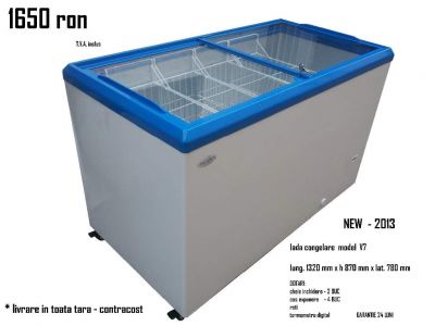 - Lazi de congelare 1320 mm cu geam culisant. Gaesti 2013. Livrare rapida in toata tara. Garantie 24 luni. Omologare UE. Dotari: roti, cosuri, inchidere cheie, termometru, sifon scurgere,etc. Capacitate 312 litri. +40767278 302. website - vitrinegaesti.ro