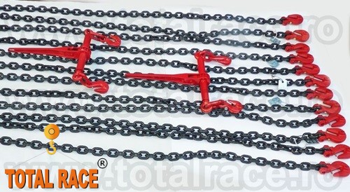 Total Race livreaza din stoc lant de ancorare de 13 mm , Lc=10000 daN ce contin: intinzator lant cu carlige de scurtare la capete 13 mm , 2 carlige cu siguranta 13 mm , cu montare directa pe lant, lant negru grad 80 cu lungime la cerere in functie de nevoile proiectului dumneavoastra , eticheta identificare dispozitiv lant ancorare . Dispozitivele si accesoriile de lant, intinzatoarele de lant sunt productie Olanda / Germania si se livreaza insotite de Declaratie de Conformitate CE emisa de importatorul autorizat Total Race.