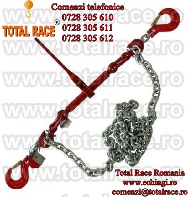 - Total Race Romania comercializeaza sisteme complete din lant de ancorare de 13 mm , Lc=10000 daN ce contin: intinzator lant cu carlige de scurtare la capete 13 mm , 2 carlige cu siguranta 13 mm , cu montare directa pe lant, lant negru grad 80 cu lungime la cerere in functie de nevoile proiectului dumneavoastra , eticheta identificare dispozitiv lant ancorare . Dispozitivele si accesoriile de lant, intinzatoarele de lant sunt productie Olanda / Germania si se livreaza insotite de Declaratie de Conformitate CE emisa de importatorul autorizat Total Race. Dispozitivele de lant de ancorare sunt marcate CE si in conformitate cu EN 12195-3. Livrare lanturi ancorare din stoc Bucuresti in 24 ore oriunde in tara prin curierat rapid. Discount 15% la achizitia a 4 sisteme complete lant ancorare!!! Pentru lista completa de sisteme de lant de ancorare accesati magazinul nostru online: www.echingi.ro .