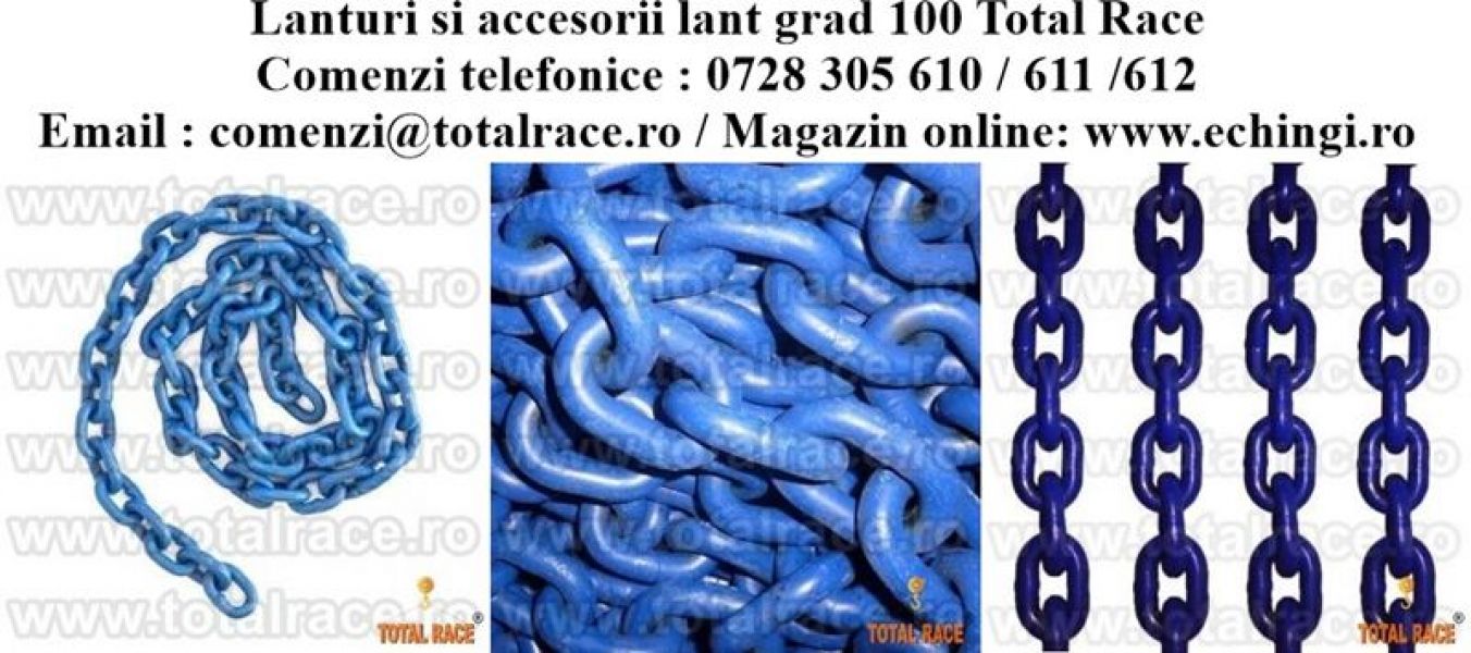 Total Race Romania comercializeaza cu livrare din stoc carlige clevis cu siguranta grad 100 , carlige clevis cu autoblocare grad 100, carlige cu ochi , autoblocare si maner grad 100 , carlig cu ochi si autoblocare grad 100 , carlige scurtare pentru lant grad 100 , scurtatoare de lant clevis tip cleste , lanturi de ridicare grad 100 , lant industrial vopsit albastru , cuple de legatura pentru lant grad 100 , dispozitive de ridicare din lant grad 100 cu 1 brat , dispozitiv de lant grad 100 cu 2 brate , sistem de ridicare cu 3 brate lant grad 100 , instalatie de ridicare cu 4 brate din lant industrial vopsit albastru grad 100 , accesorii lant grad 100 , lant ridicare 8 mm 2.5 tone, lant albastru 10 mm capcitate de ridicare 4 tone , lant albastru za 13 mm WLL 6.7 tone , lant industrial dimensiune za 16 mm capacitate 10 tone, inel principal simplu grad 100. -